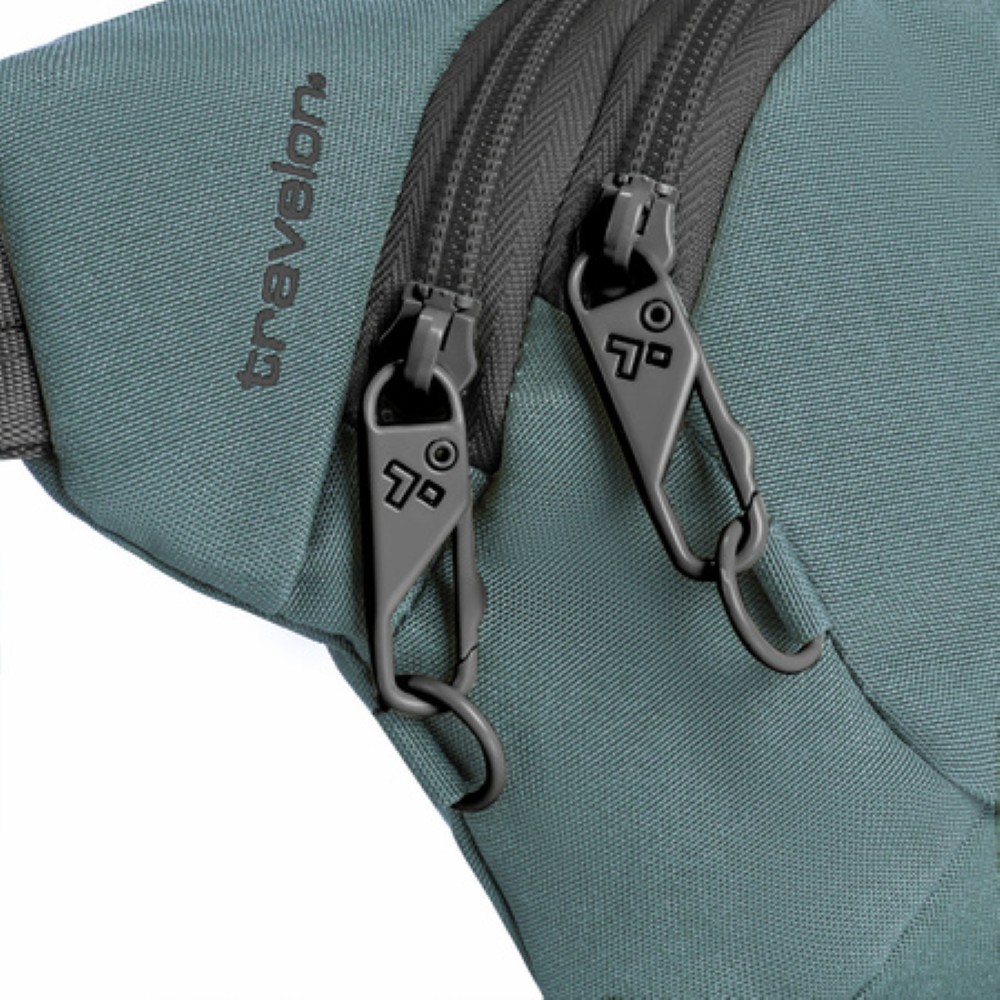 Bij Travelon is veiligheid de standaard, geen optie. Zoals elk model in onze collectie, introduceert deze heuptas je aan de volledige veiligheid van het gepatenteerde 5-Point Anti-Theft™ beveiligingssysteem. Dit systeem vormt de kern van onze tassen en biedt u de best mogelijke bescherming tegen diefstal, zodat u vol vertrouwen op pad gaat met uw anti-diefstal heuptas: