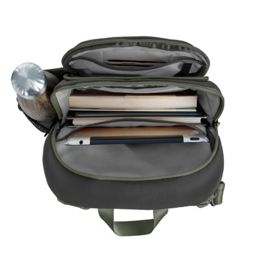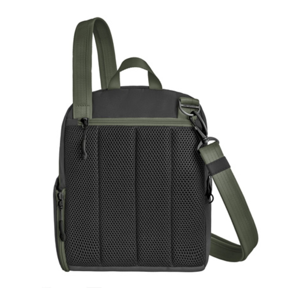 1. Snijbestendig Body (lees meer): De stof bevat een onzichtbaar anti-diefstal raster van materiaal dat ook voor kogelwerende vesten wordt gebruikt. Dit voorkomt het opensnijden van de tas.