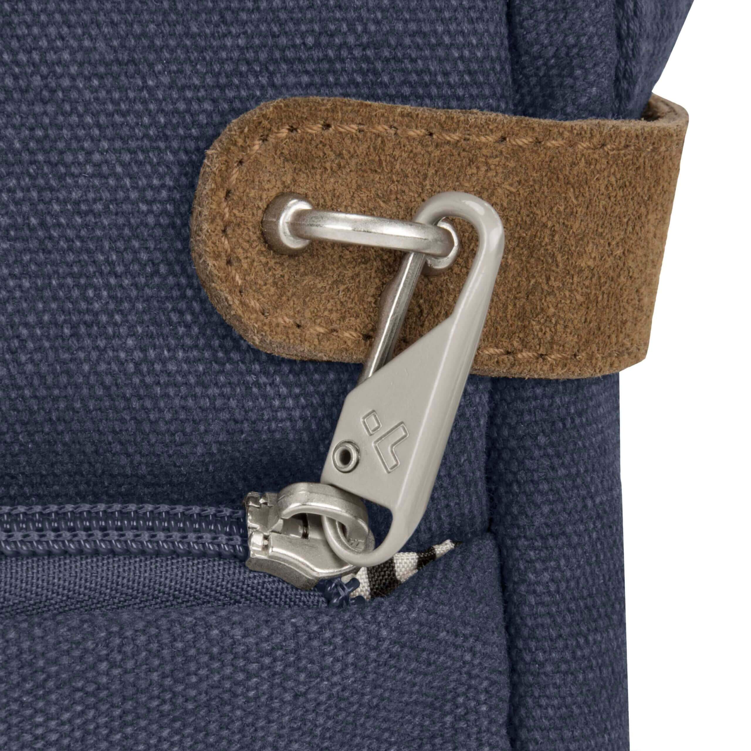 - Lock-Down Riem (lees meer): De schouderriem kan losgeklikt en rond een vast object (zoals een stoel of bank) worden vastgezet. Dit voorkomt dat een dief de tas grijpt en wegloopt.