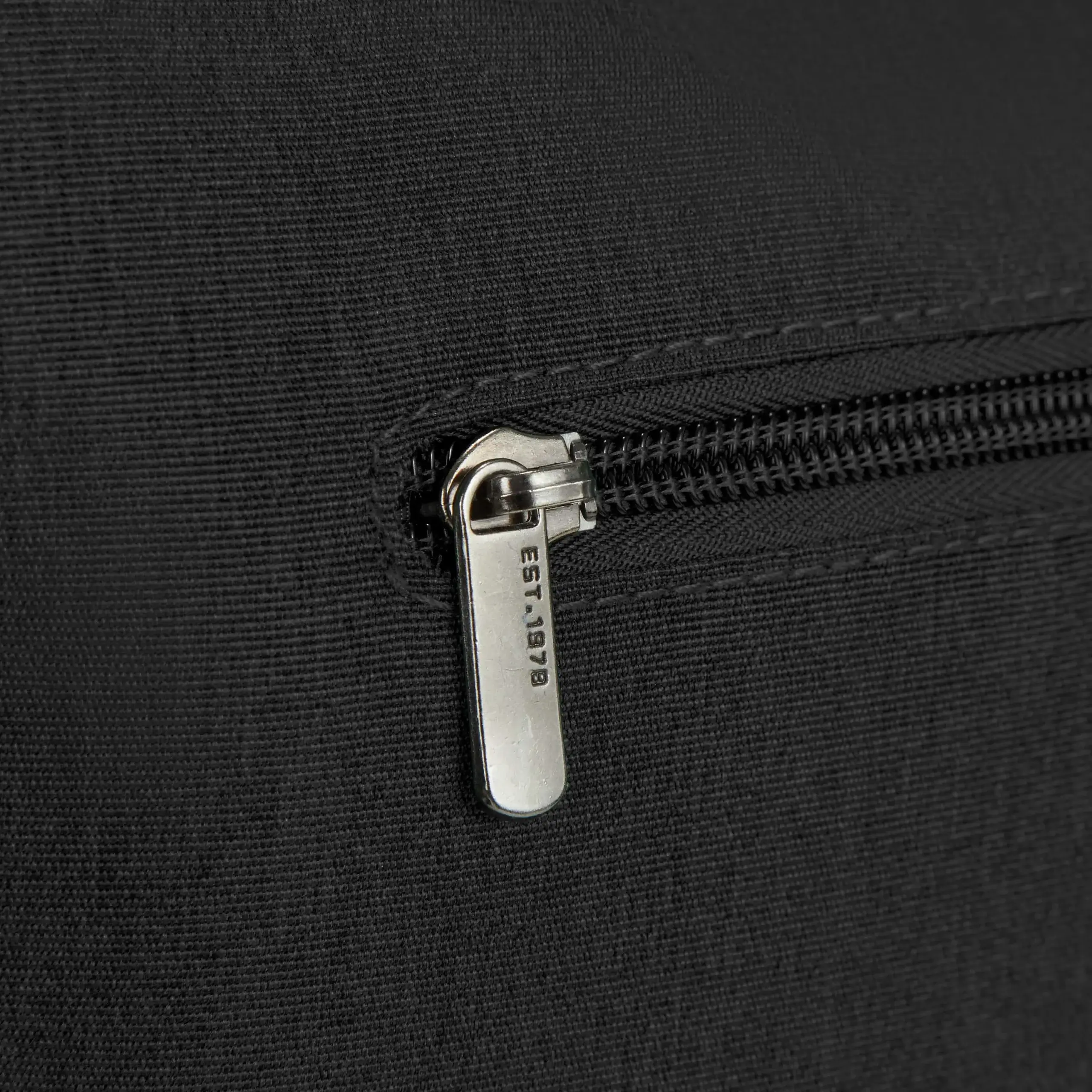 1. Snijbestendig Body (lees meer): De stof bevat een onzichtbaar, lichtgewicht anti-diefstal raster, gemaakt van materiaal dat ook wordt gebruikt voor kogelwerende vesten. Dit garandeert bescherming tegen het opensnijden van de tas en diefstal van de inhoud.