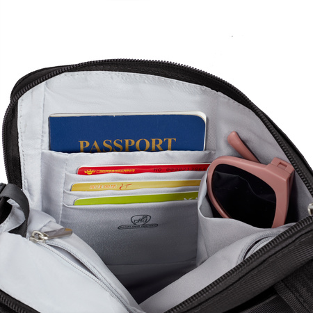 - RFID-Blokkering (lees meer): Een speciaal binnenvak met RFID-blokkering zorgt voor bescherming tegen digitale zakkenrollers en weert het ongewenst scannen van de gegevens op uw paspoorten en pasjes.