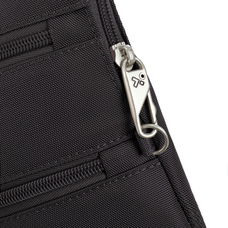 - Lock-Down Riem (lees meer): De schouderriem kan losgeklikt en rond een vast object (zoals een stoel of bank) worden vastgezet. Dit voorkomt dat een dief de tas grijpt en wegloopt.